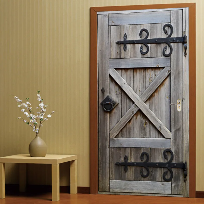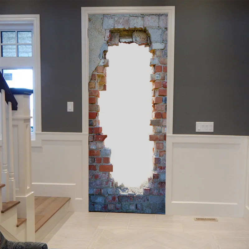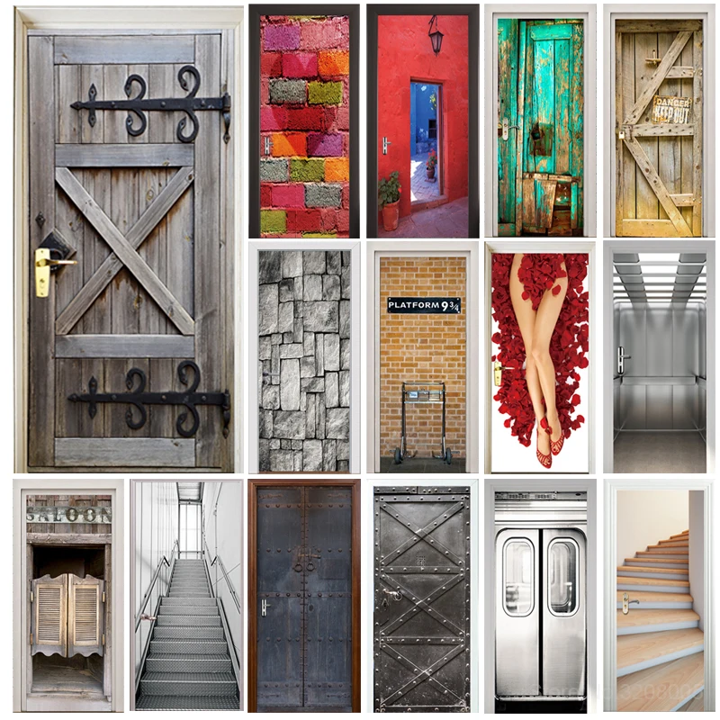 ORIGINAL Door Sticker Retro Old Wooden Door Police Hall Subway Station Bar Elevator Stairs Color Bricks Pull
