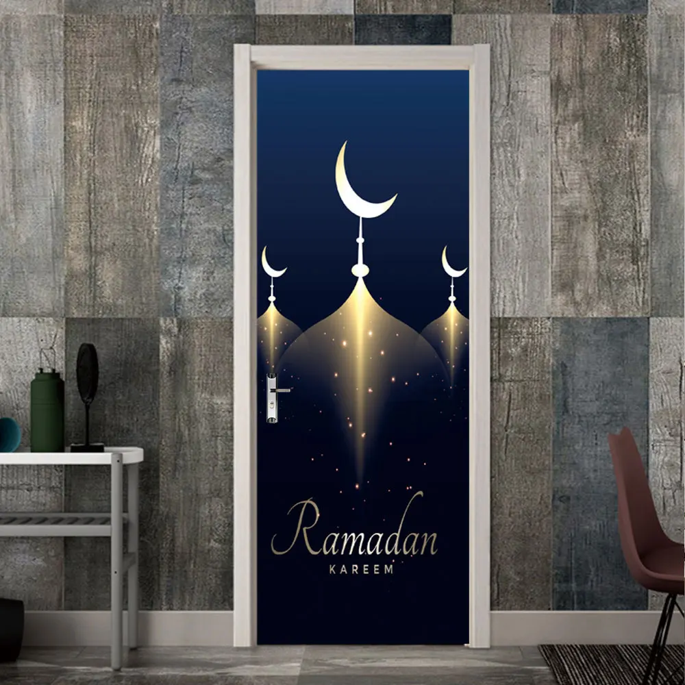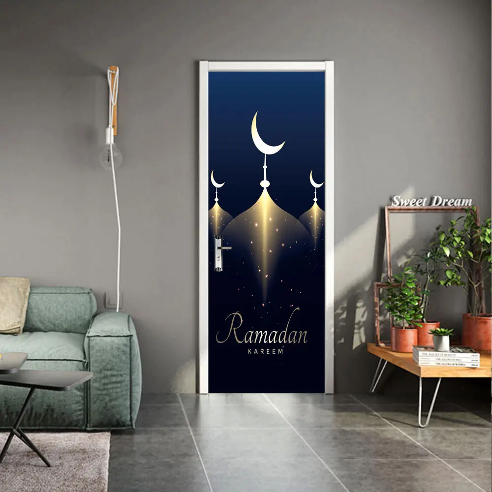 Ramadan Happy Muslim Door Stickers Can Be Removed Waterproof Wall Stickers Bedroom Living Room DIY